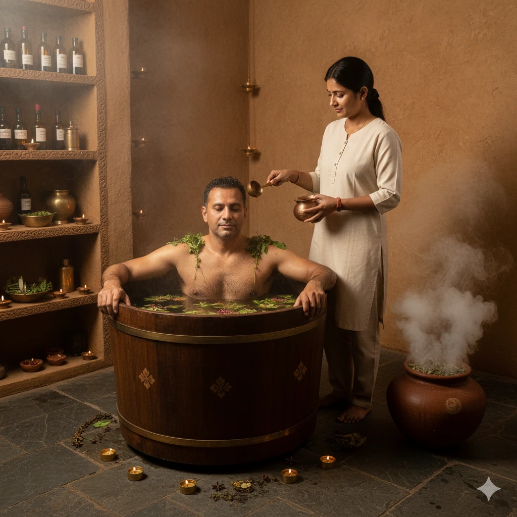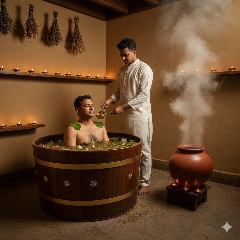 At Dr Hridyas Ayurveda Speciality Clinic, Dubai, discover the healing power of Avagaha Sweda — a deeply rejuvenating Ayurvedic therapy that soothes aches, eases stiffness, and restores balance to your body and mind. By immersing the body in warm medicated liquids or herbal oils, this therapy not only relieves pain and inflammation but also promotes deep relaxation and revitalization. It is ideal for chronic musculoskeletal conditions, gynaecological discomfort, and stress-related issues.